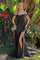 This stunning floor-length gown is designed to make an entrance. Crafted from glitter-dotted jersey, it features pleated off-the-shoulder straps. The sheer, mesh bodice is shaped with a flattering V-neckline and detailed with intricate beading, sequins, and delicate embroidery. The bodice uses the same fabric as the straps to create pleated strips of fabric that are crossed over. The fitted skirt flows into a soft drape, with side pleating, back gathering, and a thigh-high slit that adds both movement and allure.